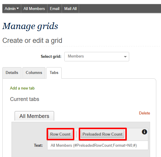 It is now possible to add row counts to grid tabs: